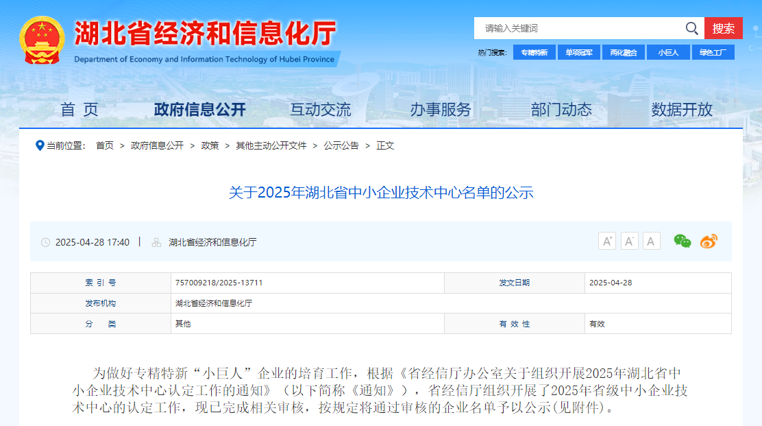 近日,湖北省經(jīng)濟(jì)和信息化廳公示了2025年度湖北省中小企業(yè)技術(shù)中心認(rèn)定名單,我院3家企業(yè)——武漢羿變電氣有限公司、武漢瑞科美新能源有限責(zé)任公司、武漢極目智能技術(shù)有限公司憑借核心技術(shù)突破與創(chuàng)新成果榮耀登榜。此次認(rèn)定標(biāo)志著三家企業(yè)在電力物聯(lián)、循環(huán)經(jīng)濟(jì)及智能駕駛領(lǐng)域的行業(yè)標(biāo)桿地位獲得高度認(rèn)可,充分彰顯了我院在企業(yè)技術(shù)創(chuàng)新和產(chǎn)業(yè)升級(jí)賦能方面的顯著成效。