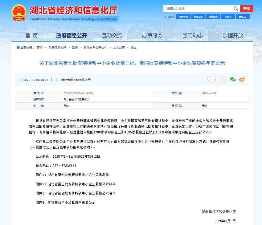 湖北省經(jīng)濟(jì)和信息化廳公示了